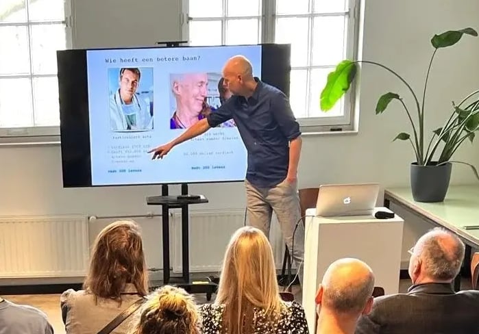 Hij houdt je aandacht vast met rustige toon en met humor, zo weet hij je te boeien en te overtuigen.